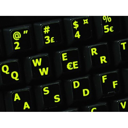 Danish - English US Glowing Fluorescent keyboard stickers are vibrant, bright-colored which are proven to be the best solution to work on your computer even in dim or poorly lit places.
