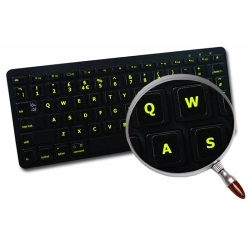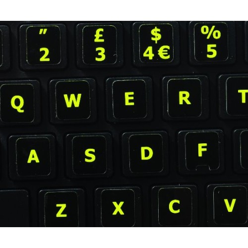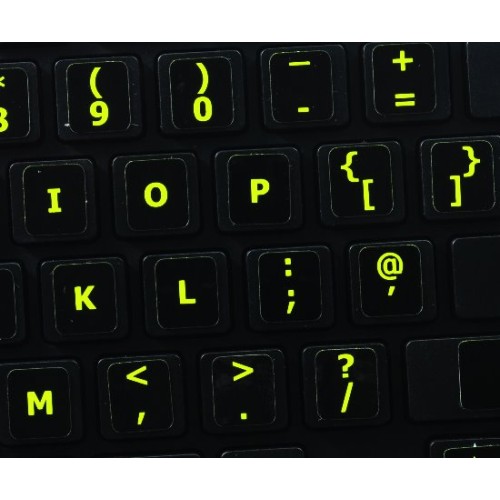 English UK for Mac Glowing Fluorescent keyboard stickers are vibrant, bright-colored which are proven to be the best solution to work on your computer even in dim or poorly lit places.