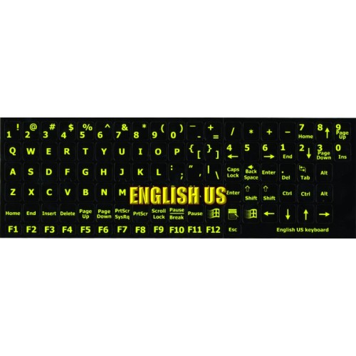 These English US Glowing keyboard stickers are made of a high quality materials, are durable and efficient. Each sticker is covered with a special protective coat which extremely increases their durability. English US stickers suitable for variety of keyboard Desktops, Laptops and Notebooks.