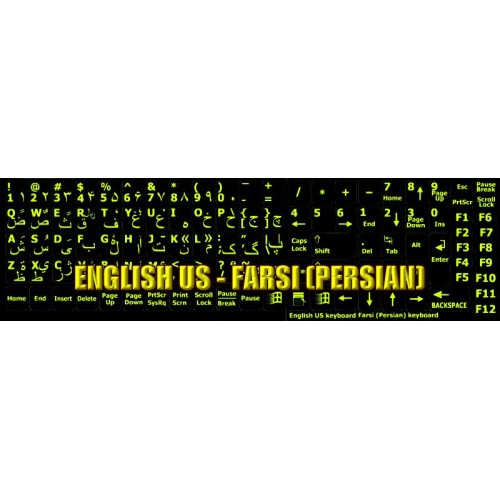 Farsi(Persian) - English US Glowing Fluorescent keyboard stickers are vibrant, bright-colored which are proven to be the best solution to work on your computer even in dim or poorly lit places.