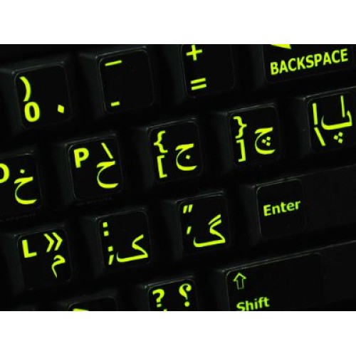 These Farsi(Persian) - English US Glowing keyboard stickers are made of a high quality materials, are durable and efficient. Each sticker is covered with a special protective coat which extremely increases their durability. Farsi(Persia) - English US stickers suitable for variety of keyboard Desktops, Laptops and Notebooks.