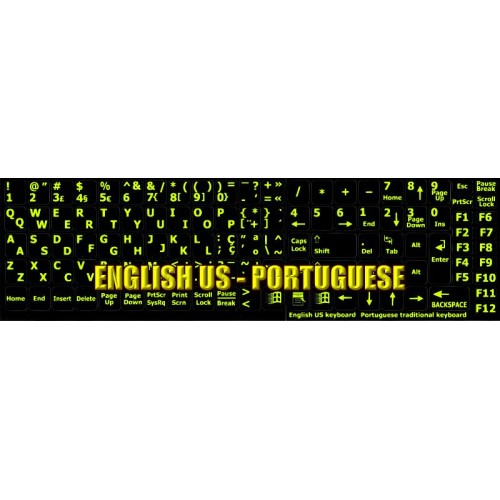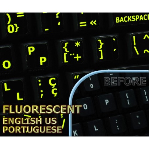 Portuguese - English US Glowing Fluorescent keyboard stickers are vibrant, bright-colored which are proven to be the best solution to work on your computer even in dim or poorly lit places.
