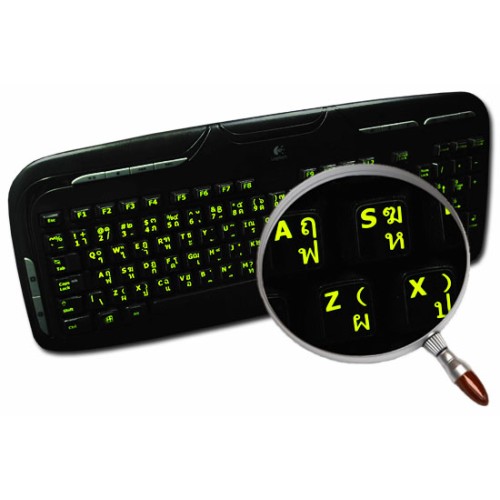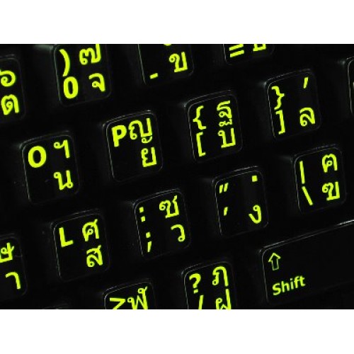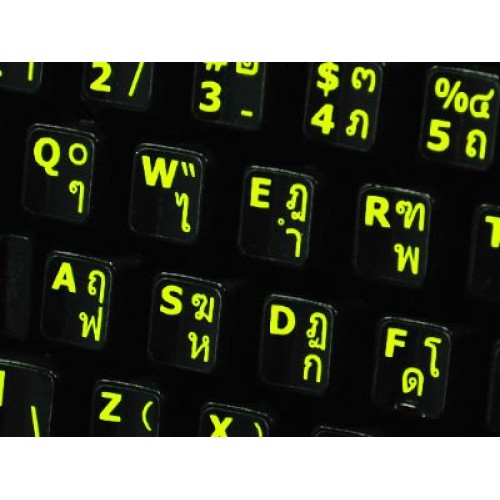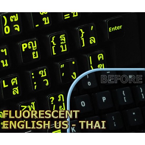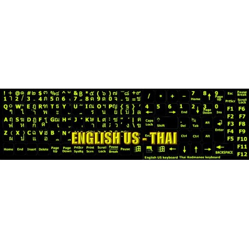 These Thai - English US Glowing keyboard stickers are made of a high quality materials, are durable and efficient. Each sticker is covered with a special protective coat which extremely increases their durability. Thai - English US stickers suitable for variety of keyboard Desktops, Laptops and Notebooks.